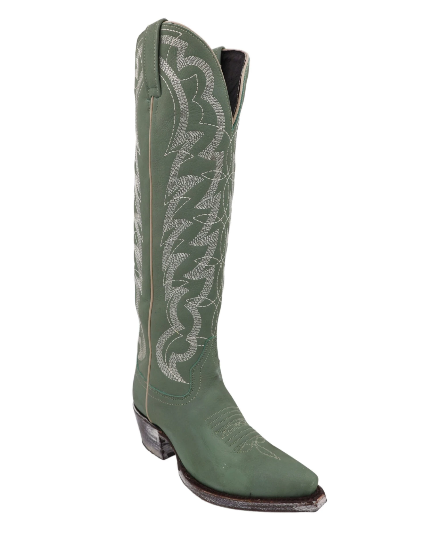 Caborca Silver Women’s Serena Mint Boots Shaft: 15″ Sole: Leather Toe: Round Heel: Cowboy