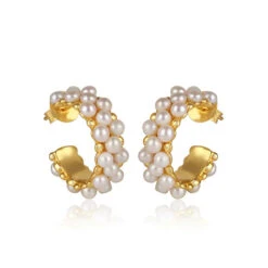 Bring a little vacation wherever you go with the Sea Salt Hoop Earrings. Encrusted in lux pearls in varying sizes for contrast, and set in 18K gold-plated brass, these open hoop earrings are a chic look from day to night. These Freshwater Pearl hoop earrings feature a post-back closure and are hypoallergenic. Wherever you wear the Sea Salt Hoop Earrings, you’ll feel transported to your favorite beach locale from the moment you put them on.