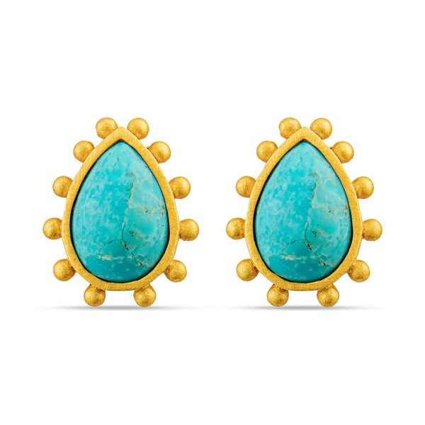 We love an everyday earring that wows, and the Starburst Stud Earrings fit the bill! Featuring a teardrop-shaped turquoise stone center, and set in 18K gold-plated brass, this simple earring is a statement maker. Studded accents adorn the outer gold setting for a gorgeous detail. Secure these earrings with the post-back for easy wear. Want to add to the look?