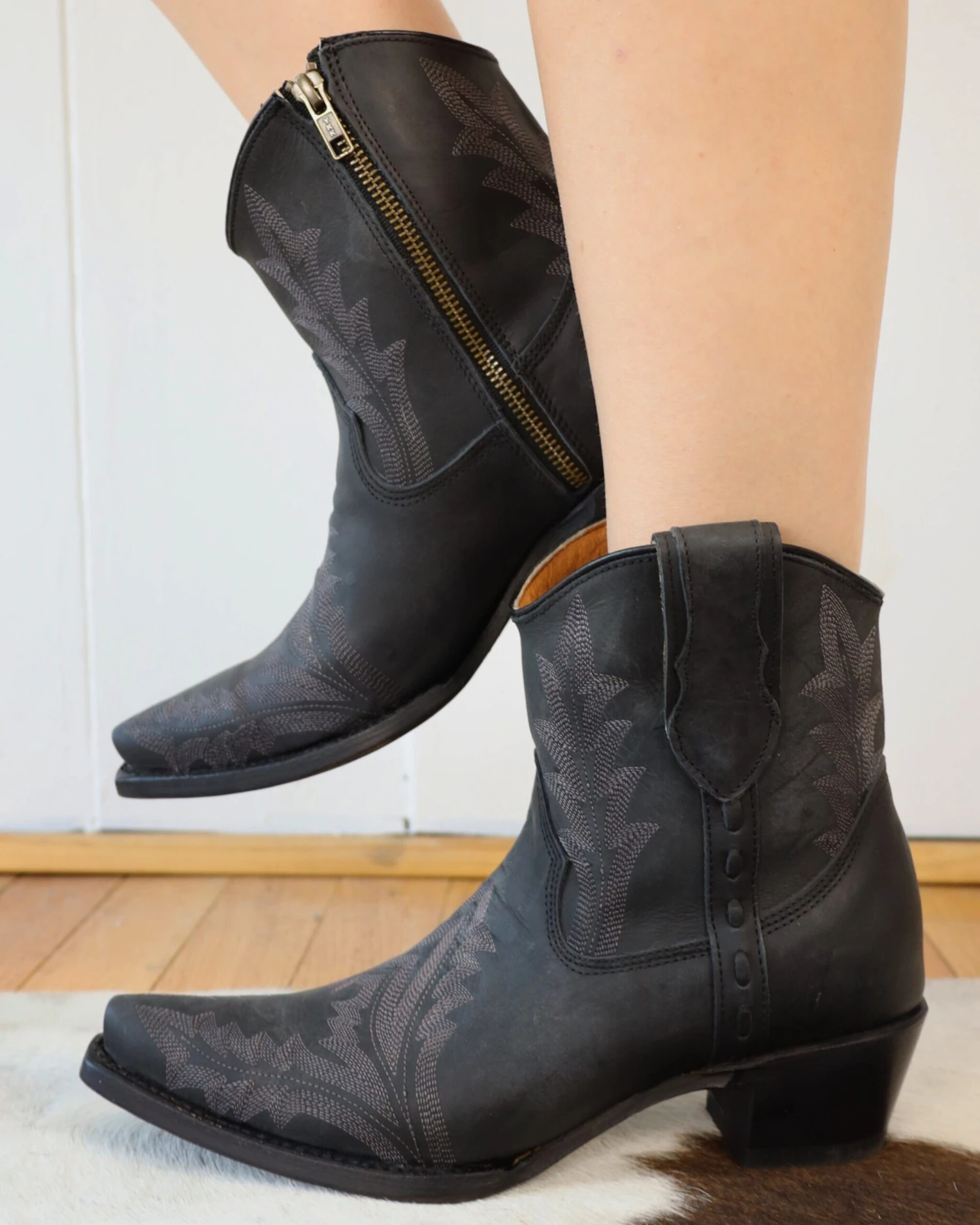 Handmade black leather western ankle boots, from the Corral Boot collection in the Circle G line.