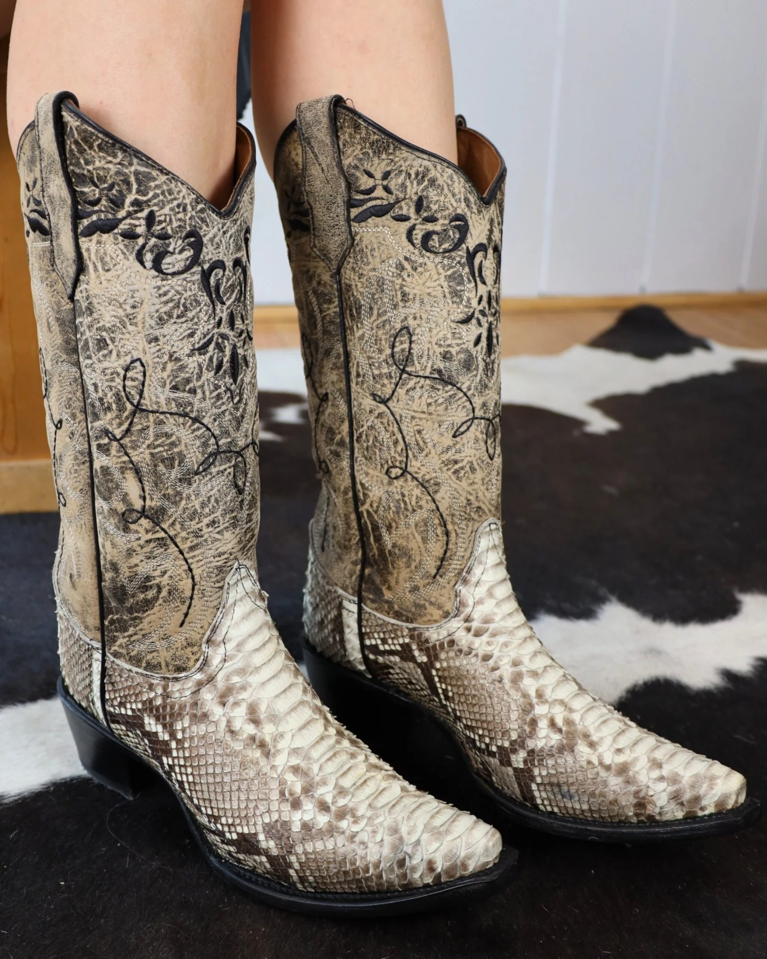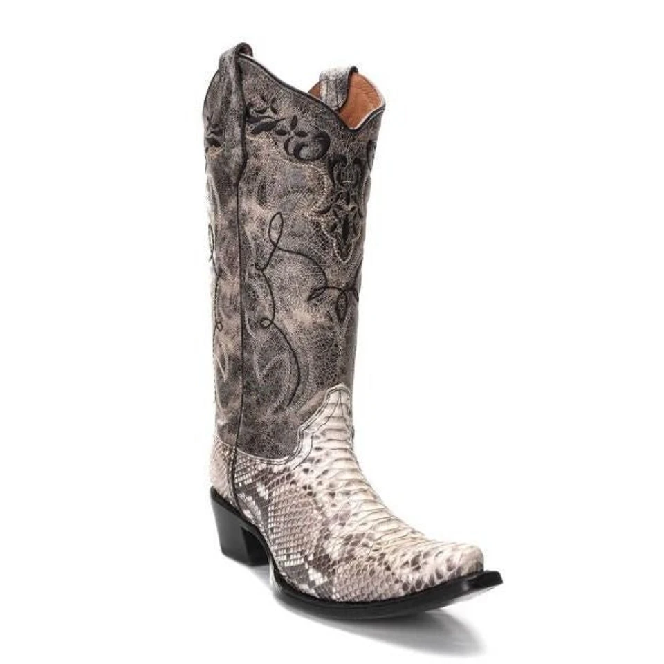 Circle G by Corral Boots white python boot with marble grey and black stitching.