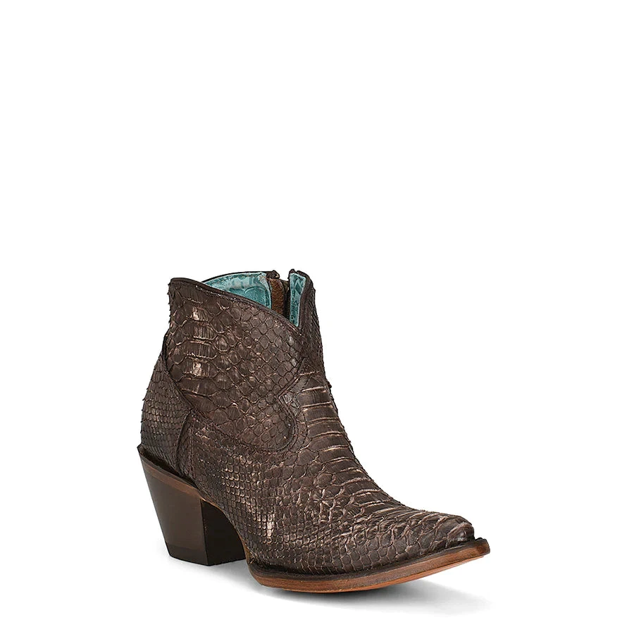Check out this beautiful distressed chocolate full python bootie style A4325! The deep chocolate python is definitely a fashion statement and rocking any show!