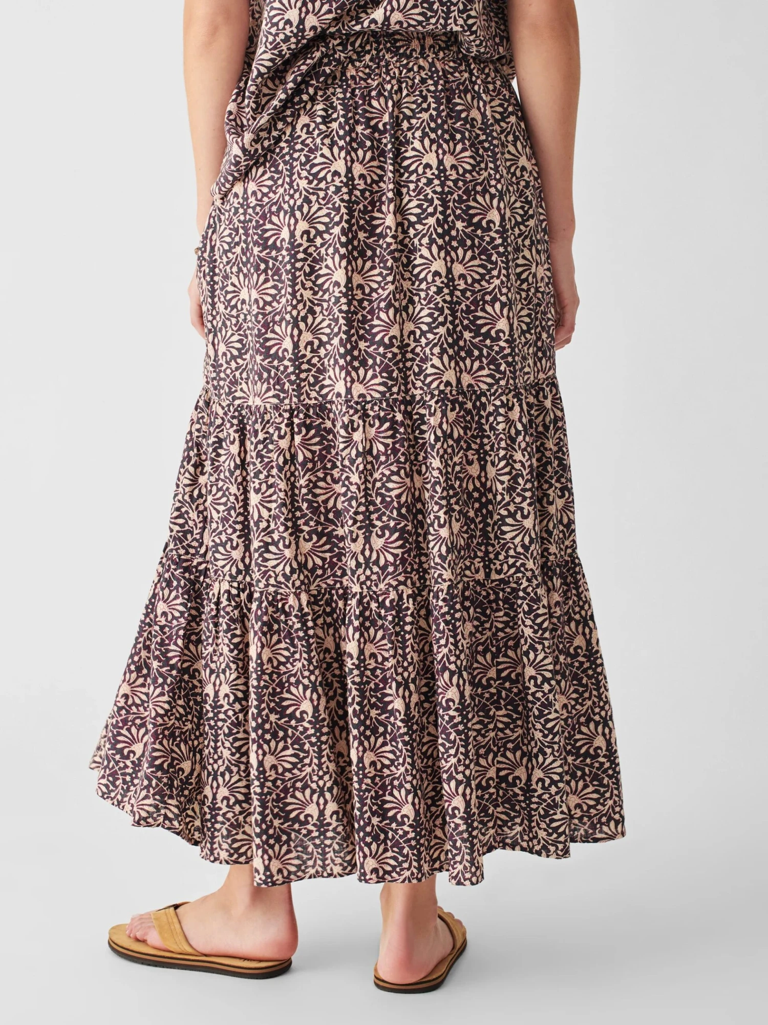 - Detail: Elastic smocked waistband, Two tiers with shirring.