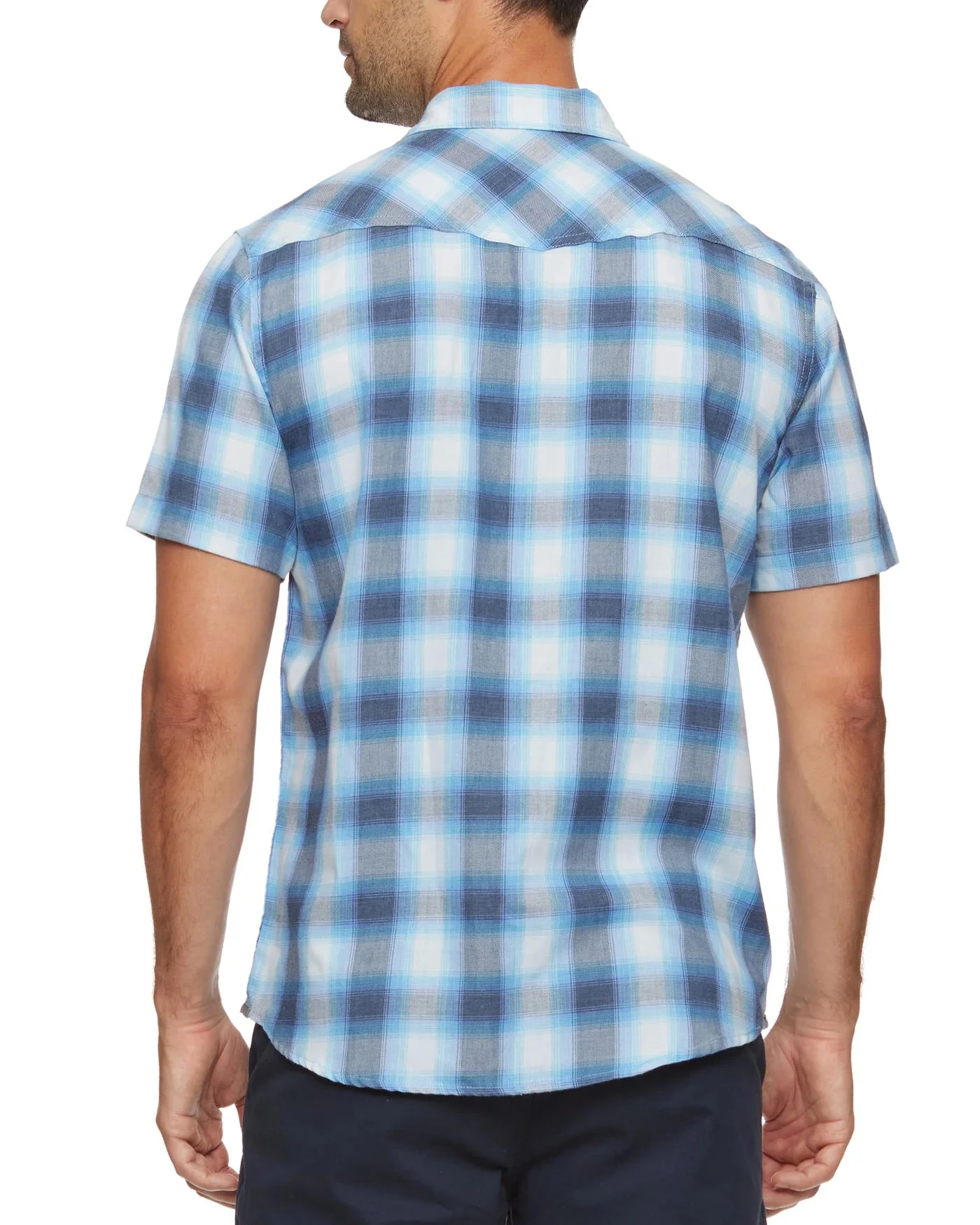 Part of our exclusive Desert Son collection, created in collaboration with Dierks Bentley, this premium plaid shirt combines rugged, vintage-inspired details with all-day comfort and quality design. Made from a lightweight and breathable cotton blend fabric that’s been specially washed for supreme softness, this classic Western silhouette fits and feels like a perfectly broken-in favorite from the first moment you put it on. Contrast chambray fabric inside collar stand, back yoke, front placket, and sleeve cuffs. Dual front chest pockets; pearlized snap closures. Tailored athletic fit.