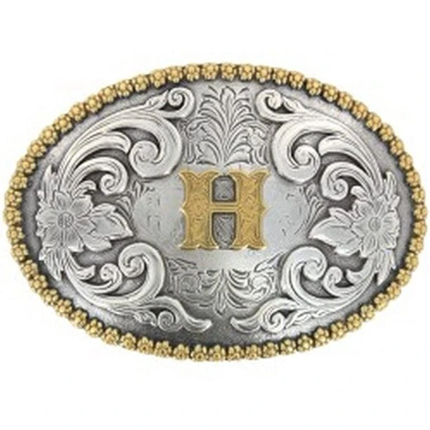 This belt buckle by M&F Western Products is made to make you look sharp! This is a very nice belt buckle that fits most size belts and has your traditional belt loop fastener that is easy to slide on and off. This buckle is made to shine up your outfit! Put this on your favorite leather belt and you will be ready to make your best impression. This M&F buckle is made with silver and is with detailed engraving that makes this buckle unique.