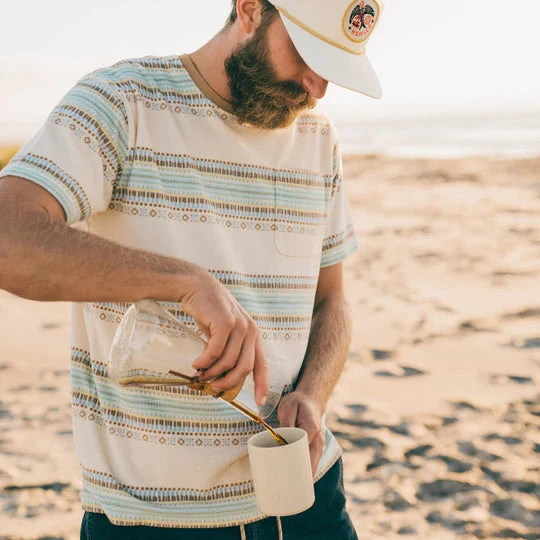 We love making new twists on vintage items. Our Terry Ts upgrade terry cloth surfing t-shirts from bygone era with new, Howlerfied designs and modern materials. Made of ridiculously comfortable cotton-poly terrycloth with contrast stitching, left front pocket and Howler icon tag at side seam.