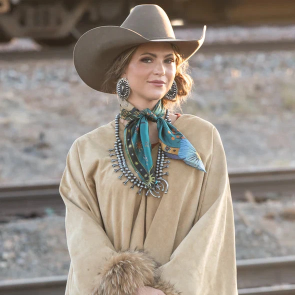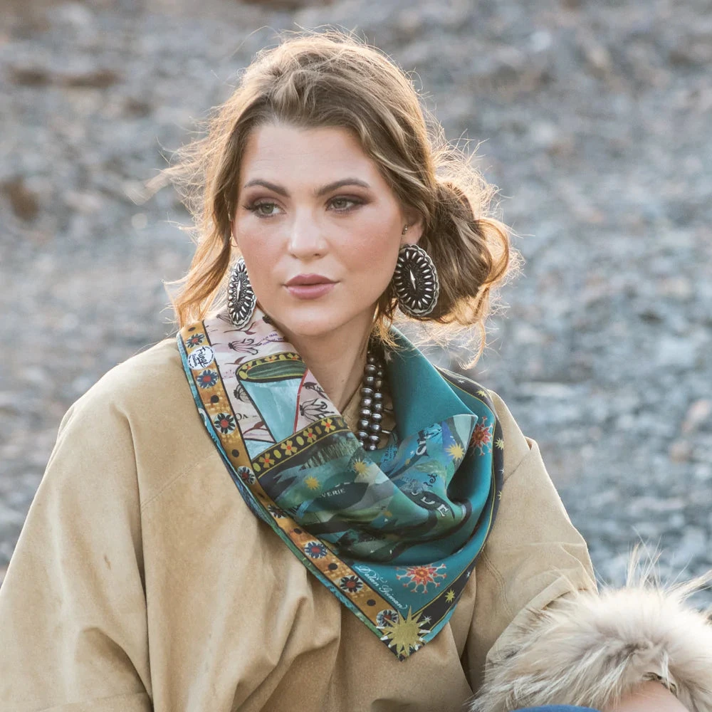 We are so excited to have nationally recognized mixed media artist, Dolan Geiman, showcasing his designs in this year’s Fringe collection. The Lady Of Guadalupe is one of five original works from Dolan in this year’s lineup. All the pieces in this scarf tell a story, have fun zooming in and finding treasures throughout this beautiful silk scarf.