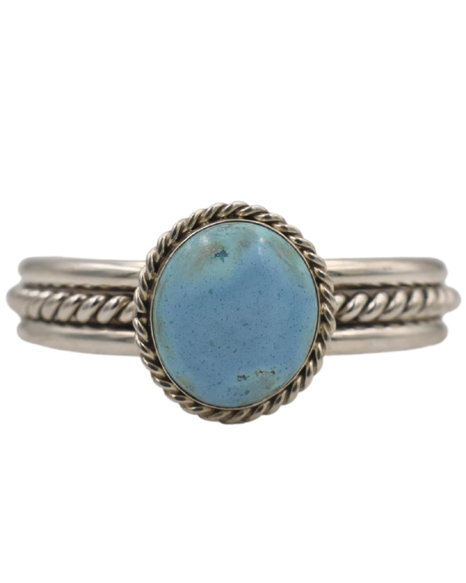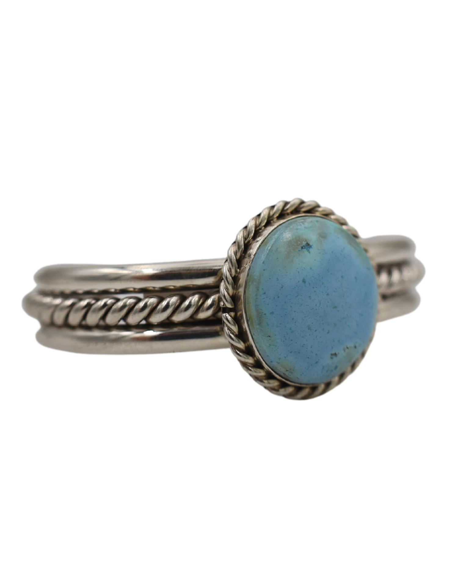Take your style to the next level with a stunningly unique Light Blue Turquoise Round with Rope Cuff! This elegant piece features a light turquoise stone surrounded by sterling silver roping, the perfect combination of eye-catching beauty and timeless sophistication. Dare to be different with this show-stopping addition to your wardrobe!