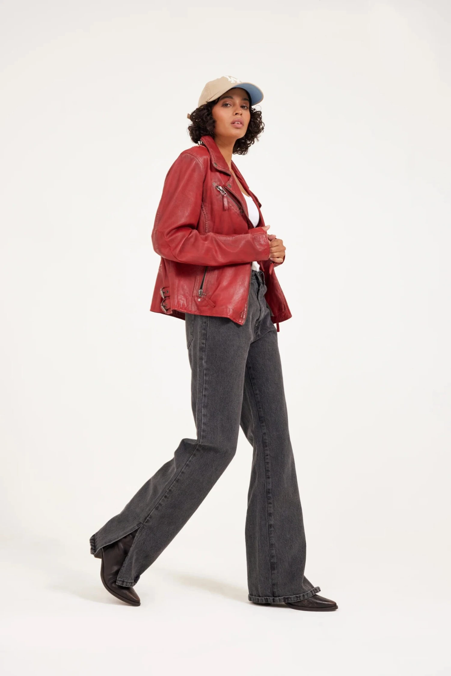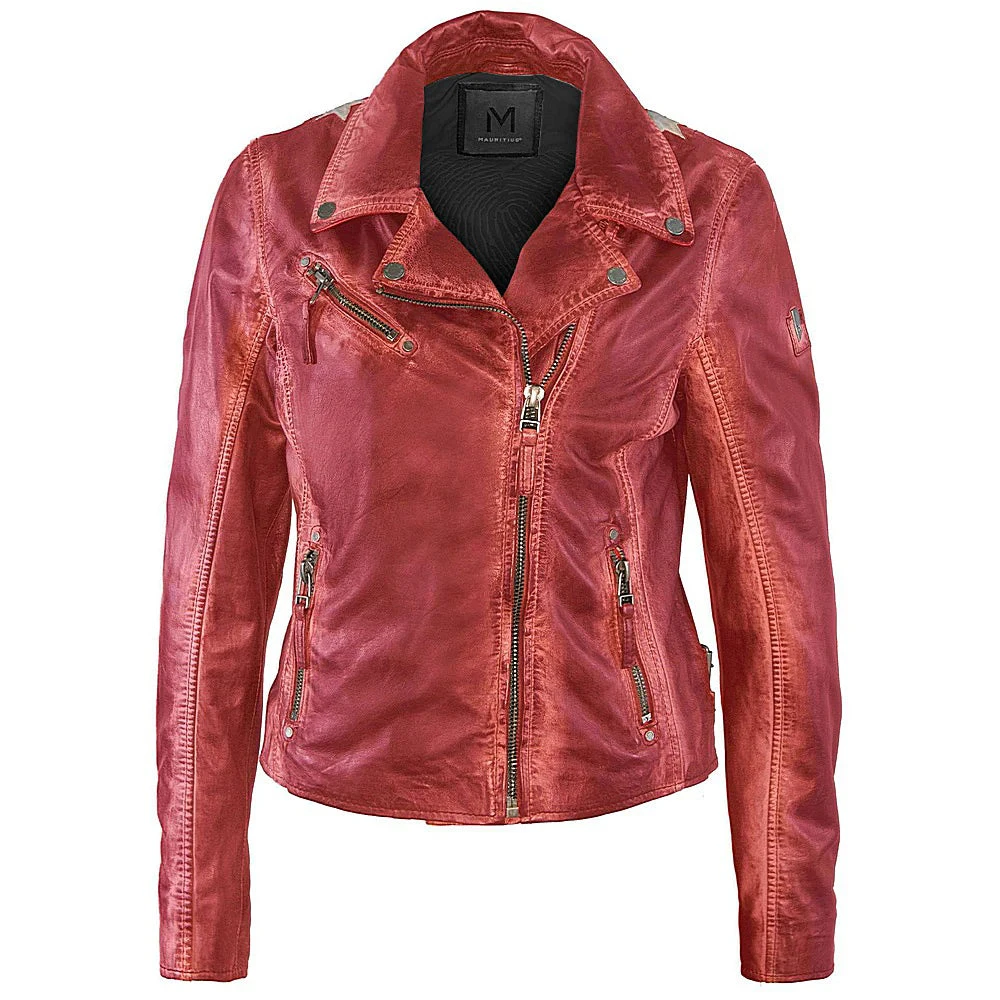 Ahhh… the famous star jacket – highlighted in many cameos on tv and movies, this style announces she has arrived. Made of 100% vegetable tanned and ethically produced lambskin leather, this jacket will catch the eye of many admirers. The seams are gently polished to ensure a distressed effect, the inside of the pockets, inside of the cuff zips and under the collar give a fabulous contrast pop of color!