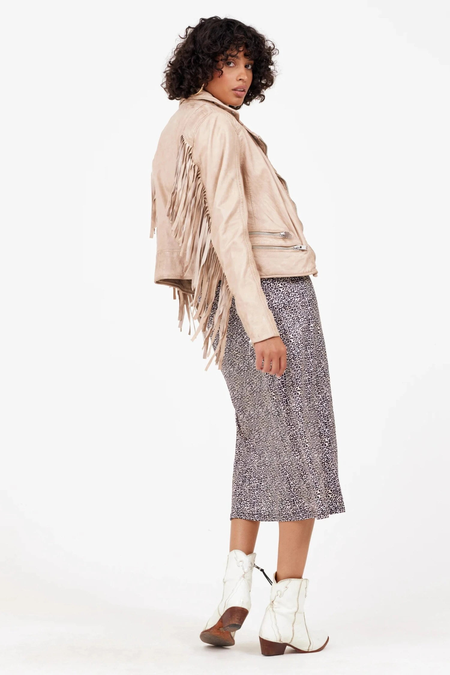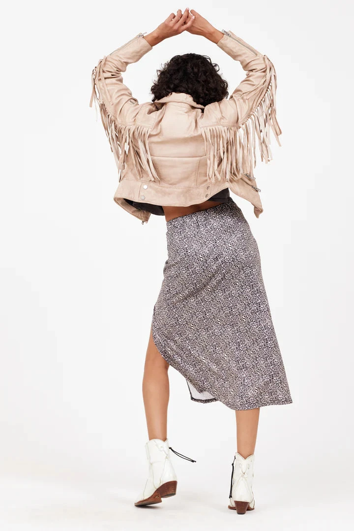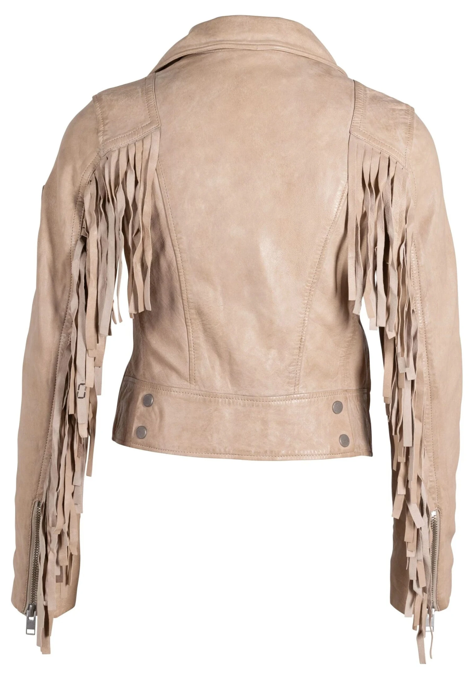 A Mauritius signature. Our super soft tumbled jacket with fringes on the arms is both statement making and classic.