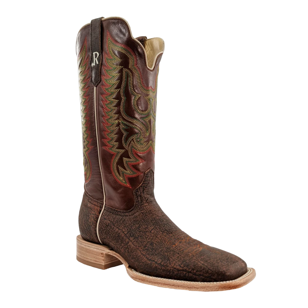 R. Watson presents these cognac cape buffalo and sierra ranch cowhide western boots. These boots have a 10 row stitch pattern, R. Watson comfort system, all leather stacked heel, counters, solid steel shank, and 10 iron outsole. 13″ total in height.