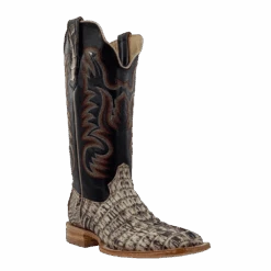 R. Watson presents these orix hornback caiman tail and chocolate malagra cowhide exotic western boots. These boots have a 10 row stitch pattern, R. Watson comfort system, all leather stacked heel, counters, solid steel shank, and 10 iron outsole. 13″ total in height.