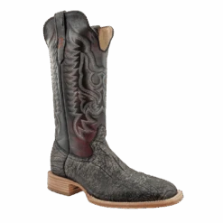 R. Watson presents these smoke grey cape buffalo and black cherry brush off cowhide western boots. These boots have a 10 row or corded stitch pattern, R. Watson comfort system, all leather stacked heel, counters, solid steel shank, and 10 iron outsole. 13″ total in height.