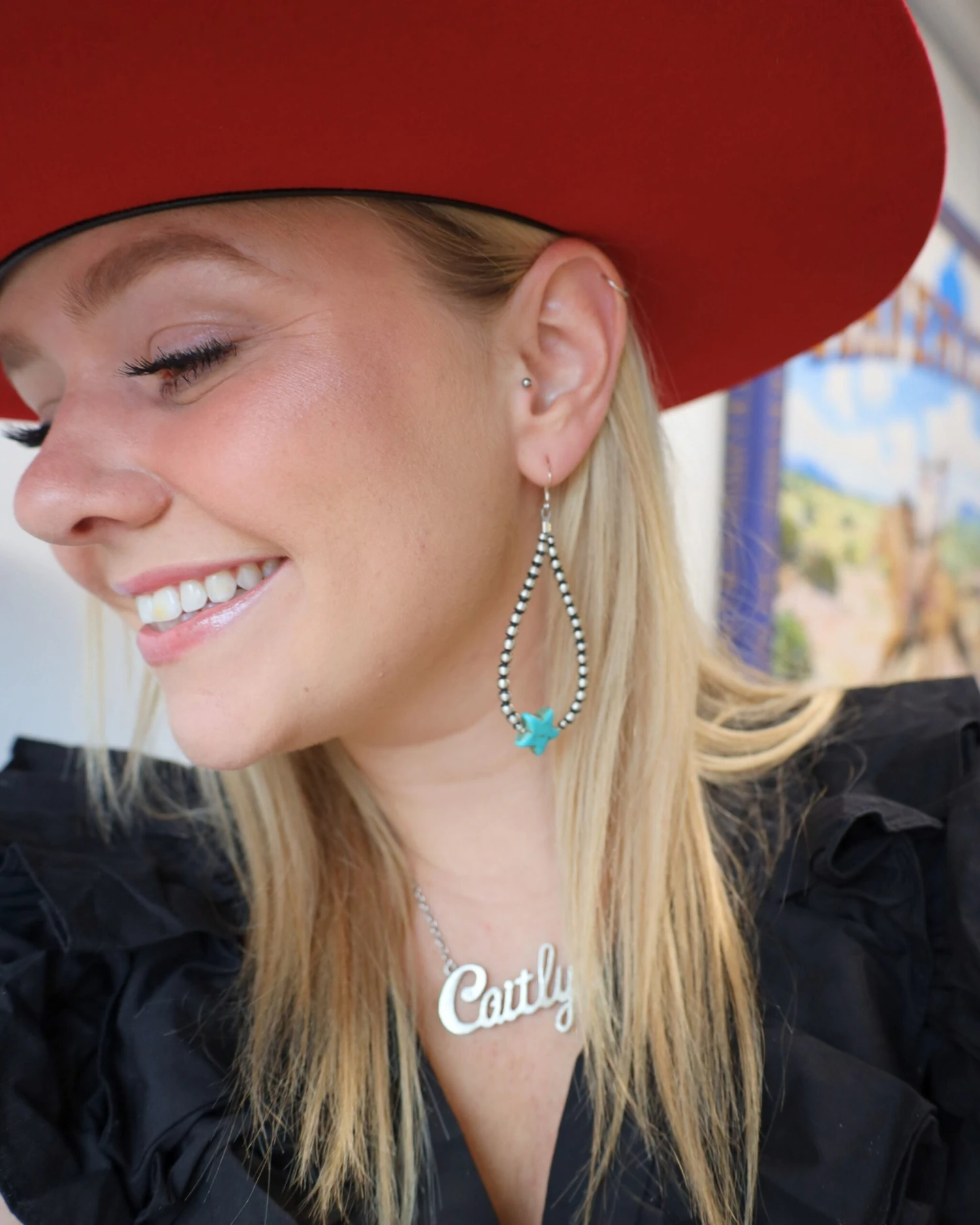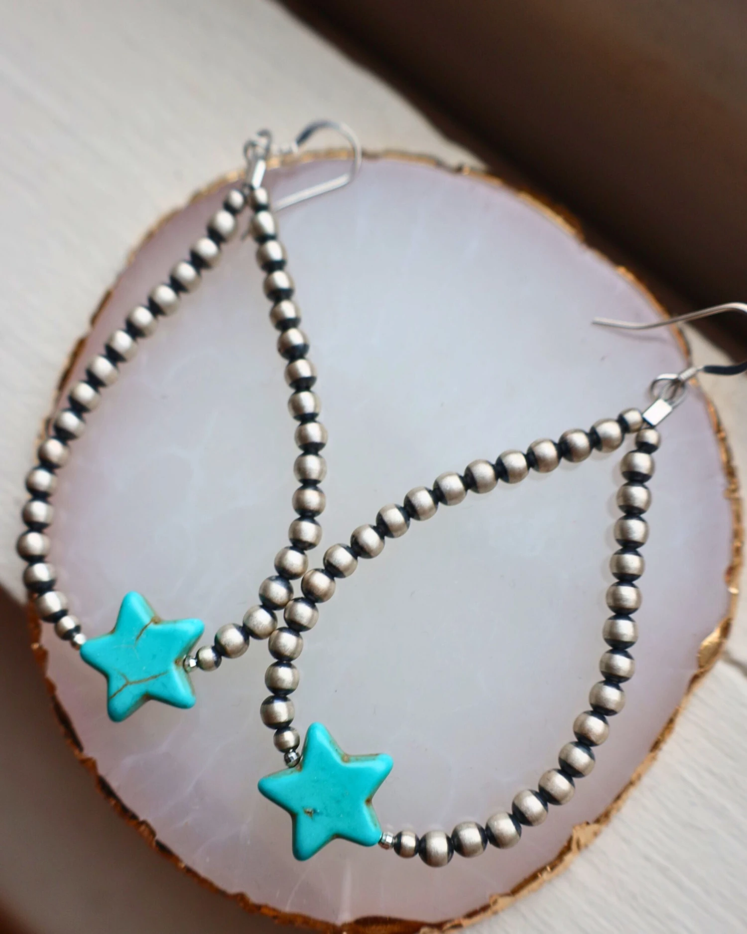 Elegant and stylish, these Navajo pearl earrings are the perfect addition to any classic look. The unique teardrop shape and gorgeous turquoise stars make your outfit shine from day to night. Get the best of western jewelry with these timeless beauties.