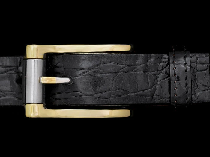 A smooth-finished, contemporary 14 karat gold roulette buckle. This cast buckle features a 14k gold arm bar. Pair with your favorite belt.