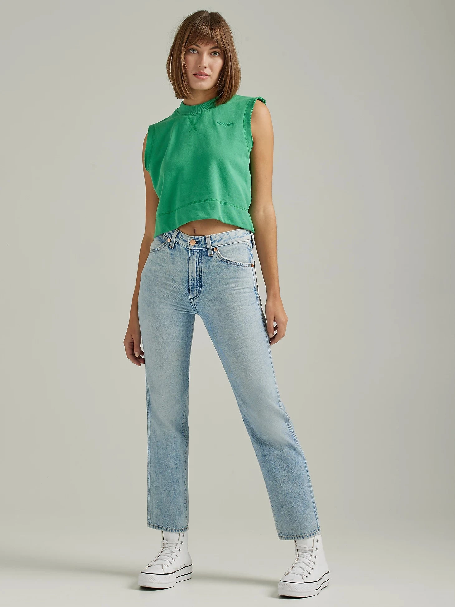 Wrangler® butts have a habit of driving people nuts, and this straight-legged take on the Heritage fit only adds fuel to the fire. Wild West has a fierce and fiery spirit—the kind that makes you want to throw caution to the wind and ride off into the sunset toward your next adventure. With its hip-hugging high rise, this stylish snack of a jean pays homage to our Western heritage in the same silhouette Lady Wrangler® has known and loved for decades. Modernized with a slightly tapered ankle crop, Wild West is sure to add some cowgirl credentials to your everyday wardrobe.