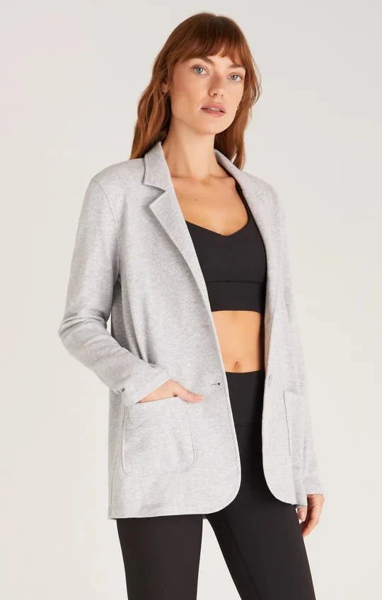 Business casual comes to activewear! Our Active line combines form and function with undeniable comfort and this blazer has it all. Relaxed, with a looser fit, the Casual Fridays Terry Blazer is made from our soft French Terry fabric and features two center buttons and front pockets. Pair it with any Active set or denim for a chic layer.